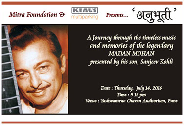 After the much appreciated ANUBHUTI event in 2015, the Mitra Foundation of Pune held a second show on 14 July due to various requests. Sanjeev Kohli once again, screened the film A JOURNEY THROUGH HIS TIMELESS MUSIC, and thereafter shared rare memories and insights into the life and music of his legendary father. The audience listened with rapt attention and enjoyed the event.