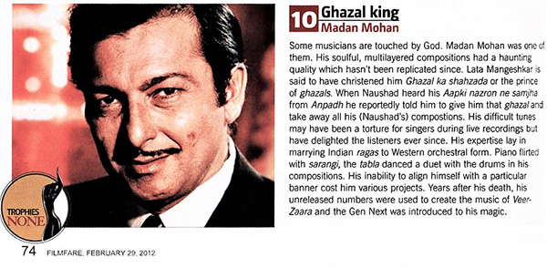 KHAZANA (A Festival of Ghazals) held in July 2009 in Mumbai, was dedicated to Madan Mohanji.