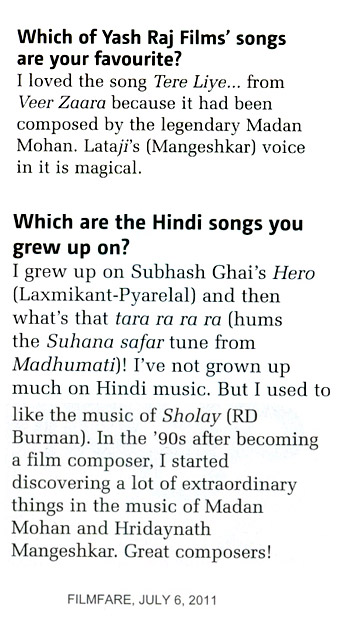 In the latest issue of Filmfare, A. R. Rahman has, once again, paid tribute to Madanji in an exclusive interview.