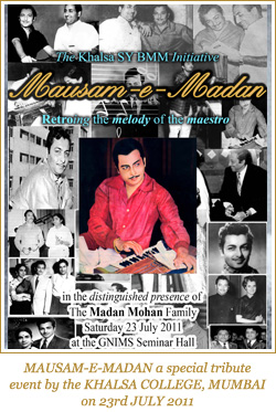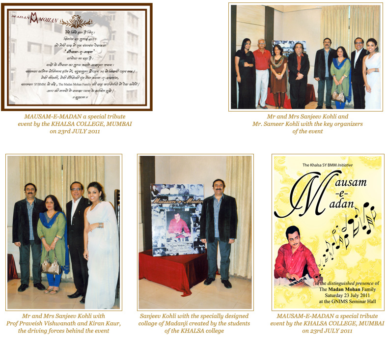 The students of KHALSA COLLEGE, Mumbai, organized a memorable event titled Mausam-e- Madan. This daylong event was a tribute to the life and times of Madanji... it was an event of the students, produced by the students for the students and held in the college premises on 23 July 2011.
