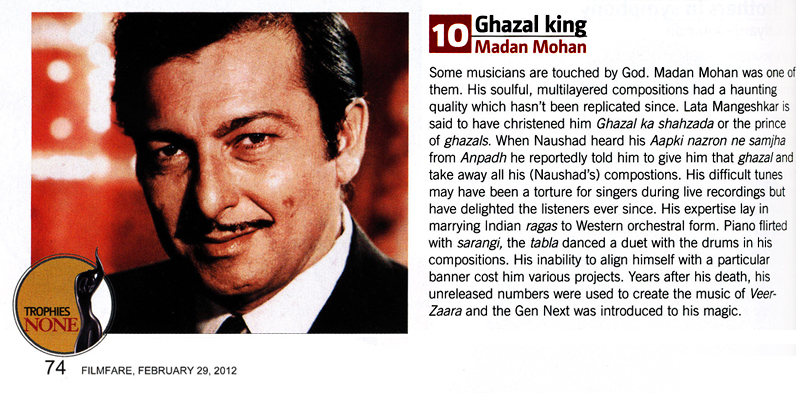 Madan Mohanji among Top 10 composing icons in Filmfare poll