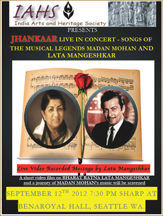 A grand concert is being organized in SEATTLE, USA by the INDIAN ARTS AND HERITAGE SOCIETY on 12 Sept 2012 at the Benaroyale Hall. The JHANKAR group will present the musical evening for which arrangements and rehearsals are on in full swing. Mr. Subhash Sudra is supervising the event, which promises to be a great experience for music lovers.